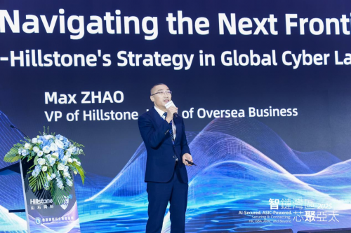 山石网科副总裁、国际事业群负责人赵京玺发表了《开拓新前沿:山石在全球安全市场的探索与布局》主题演讲。他详细分享了山石网科在国际化拓展中的战略思考与实践经验,指出公司将坚定不移地深化在东南亚及“一带一路”沿线国家的市场布局,通过领先的技术、本地化的服务与合作伙伴生态,以技术实力赢得国际市场认可,全速推进公司的全球化进程。